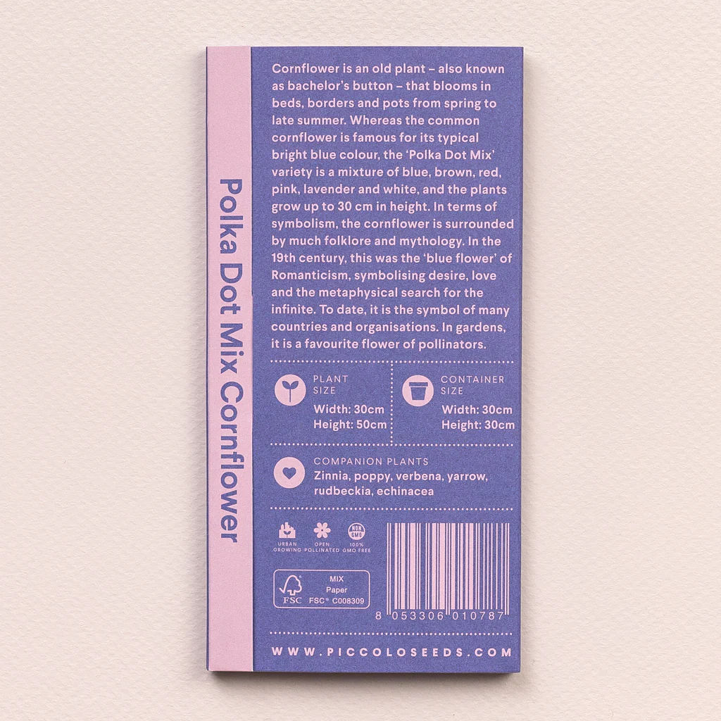 Blåklint är en gammal favorit i trädgården och är även känd som ungkarlsknapp. Blåklint blommar i bäddar, på friland och i krukor från sen vår till sensommar. En riktig favorit bland bin. Denna mixen innehåller blåklint i färgerna rosa, blå, lavendel, vit och vinröd.